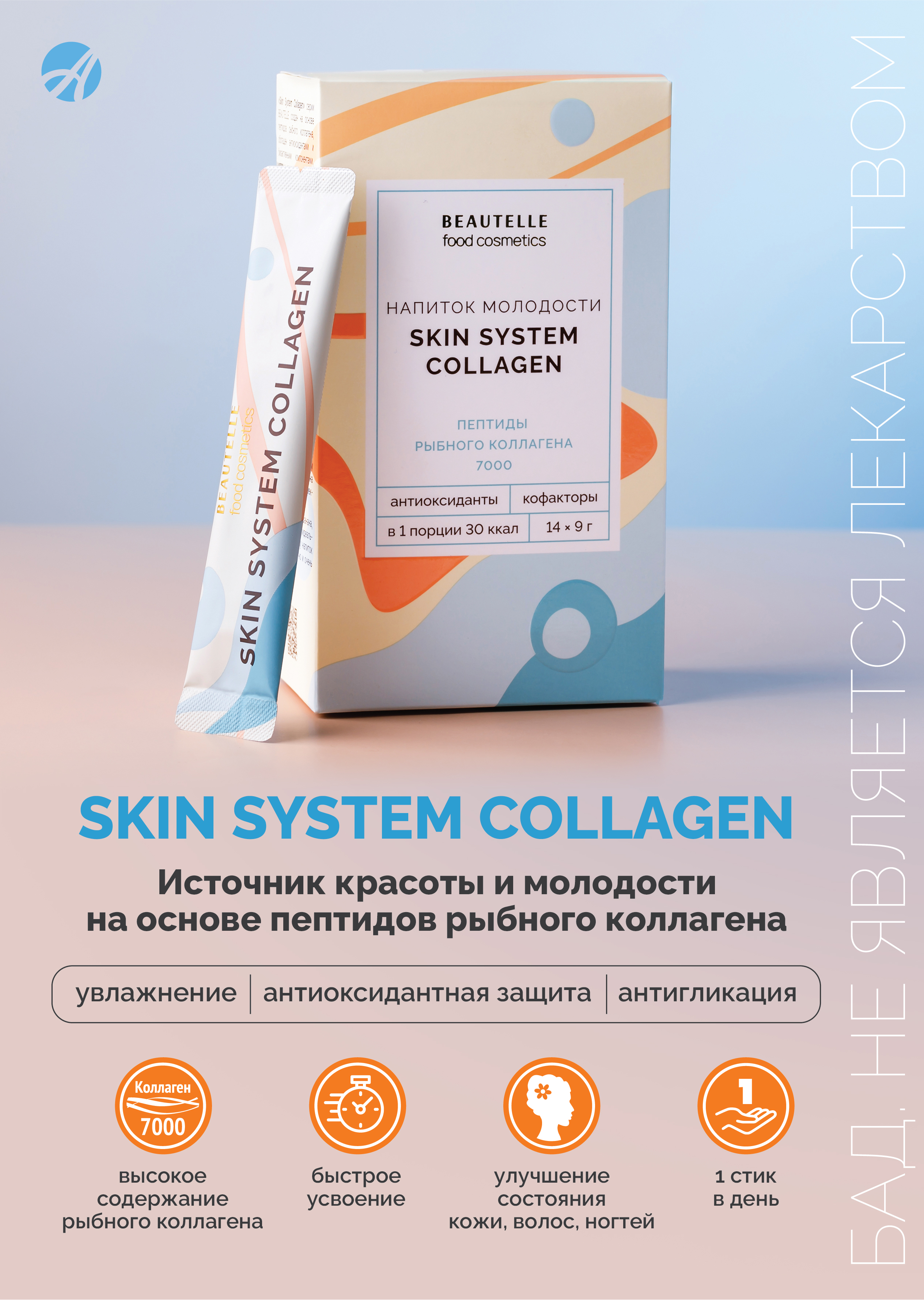 Коллаген Скин Систем (Skin System Collagen). Комплекс активных компонентов для повышения эластичности и тургора кожи, увлажнения, укрепления структуры волос и ногтей.