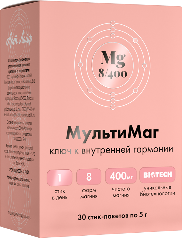 «МультиМаг» – революционный продукт, разработанный специально для максимального восполнения дефицита магния. Содержит восемь современных легкоусвояемых форм магния, уникальную форму кремния, стабилизированную холином, эндофульвин и витамин В6.