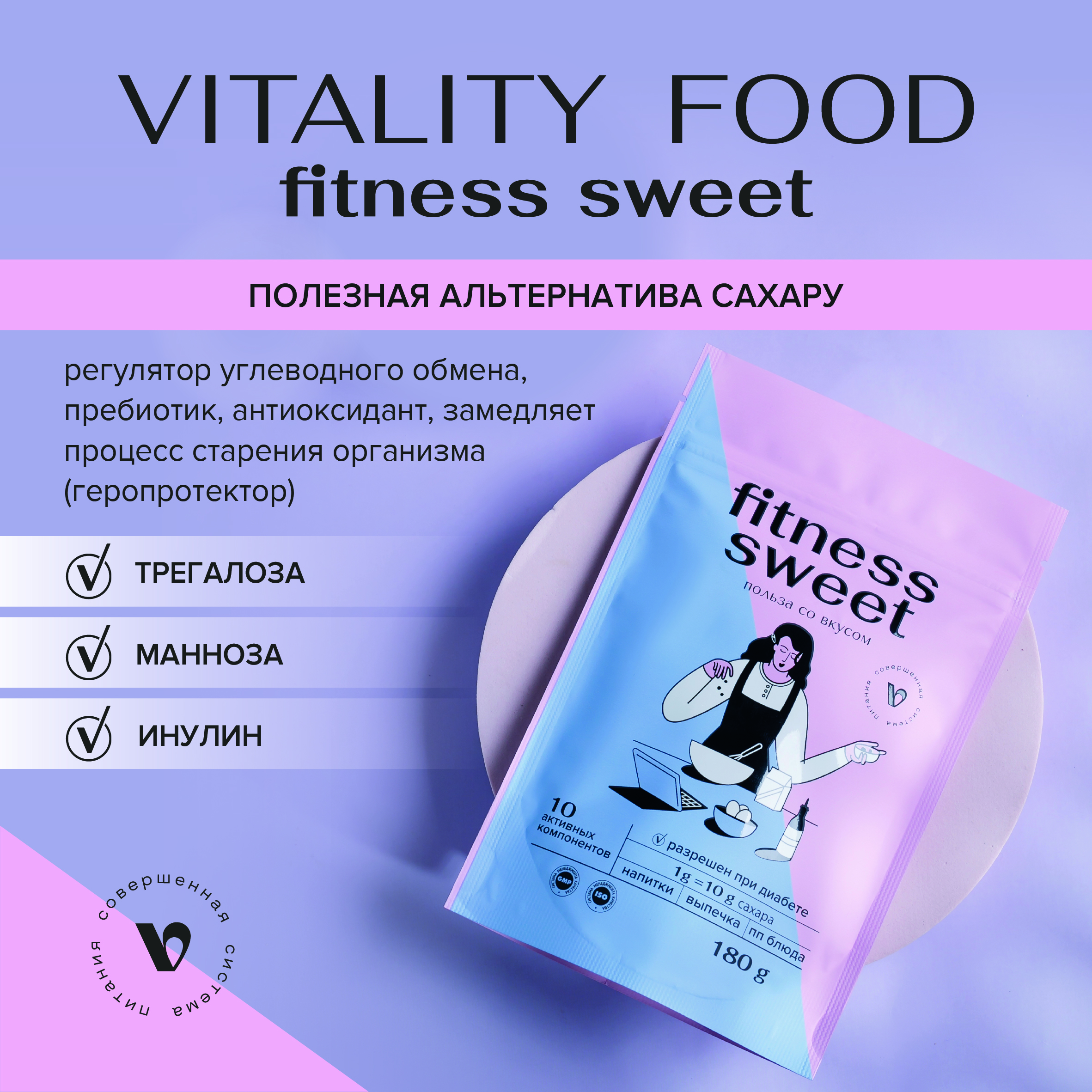 Виталити Фуд фитнес свит (Vitality Food fitness sweet). Полезная замена сахара, регулятор углеводного обмена, пребиотик, антиоксидант, замедляет процесс старения организма (геропротектор).