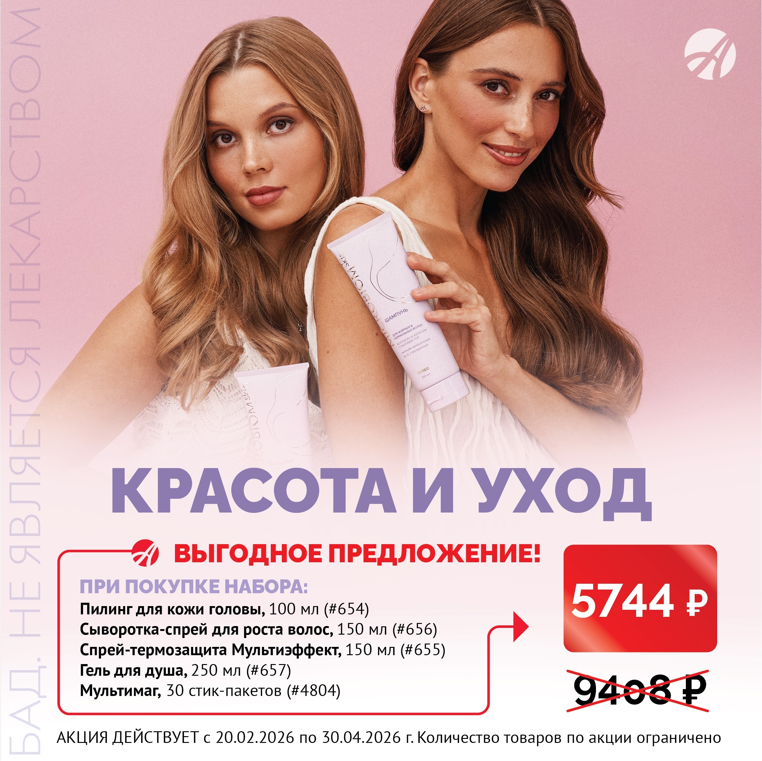 БАД "Мультимаг" и четыре средства серии МICROBIOM SKIN – "Пилинг для кожи головы", "Сыворотка-спрей для роста волос", "Спрей-термозащита Мультиэффект", "Гель для душа", вы можете купить по цене 5 744 руб., вместо 9 408 руб.