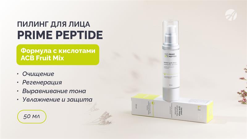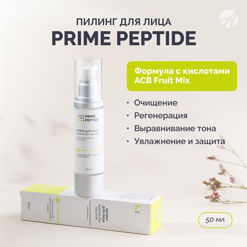 Пилинг для лица Prime Peptidе. Обеспечивает высокую эффективность и многоуровневое действие без раздражения благодаря синергетическому эффекту компонентов; универсален для всех типов кожи, биосовместим и безопасен.