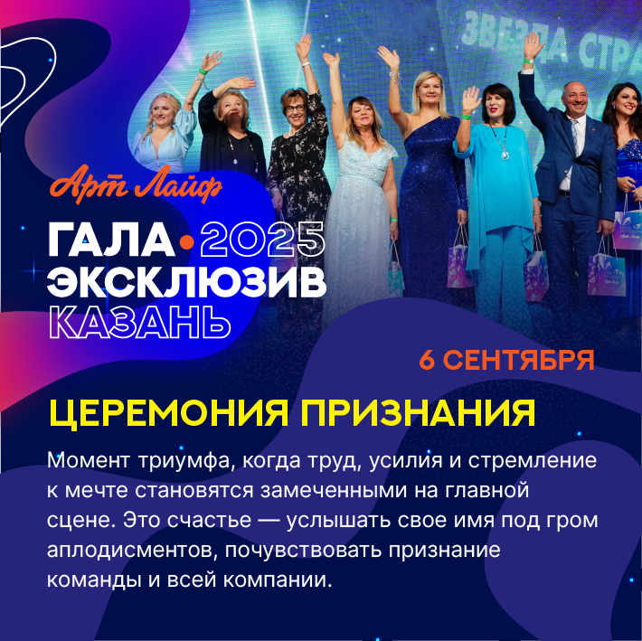 Главное событие года – Гала-эксклюзив Артлайф 2025, где все говорит о том, что каждый из нас – часть настоящего дела и часть успешной команды.