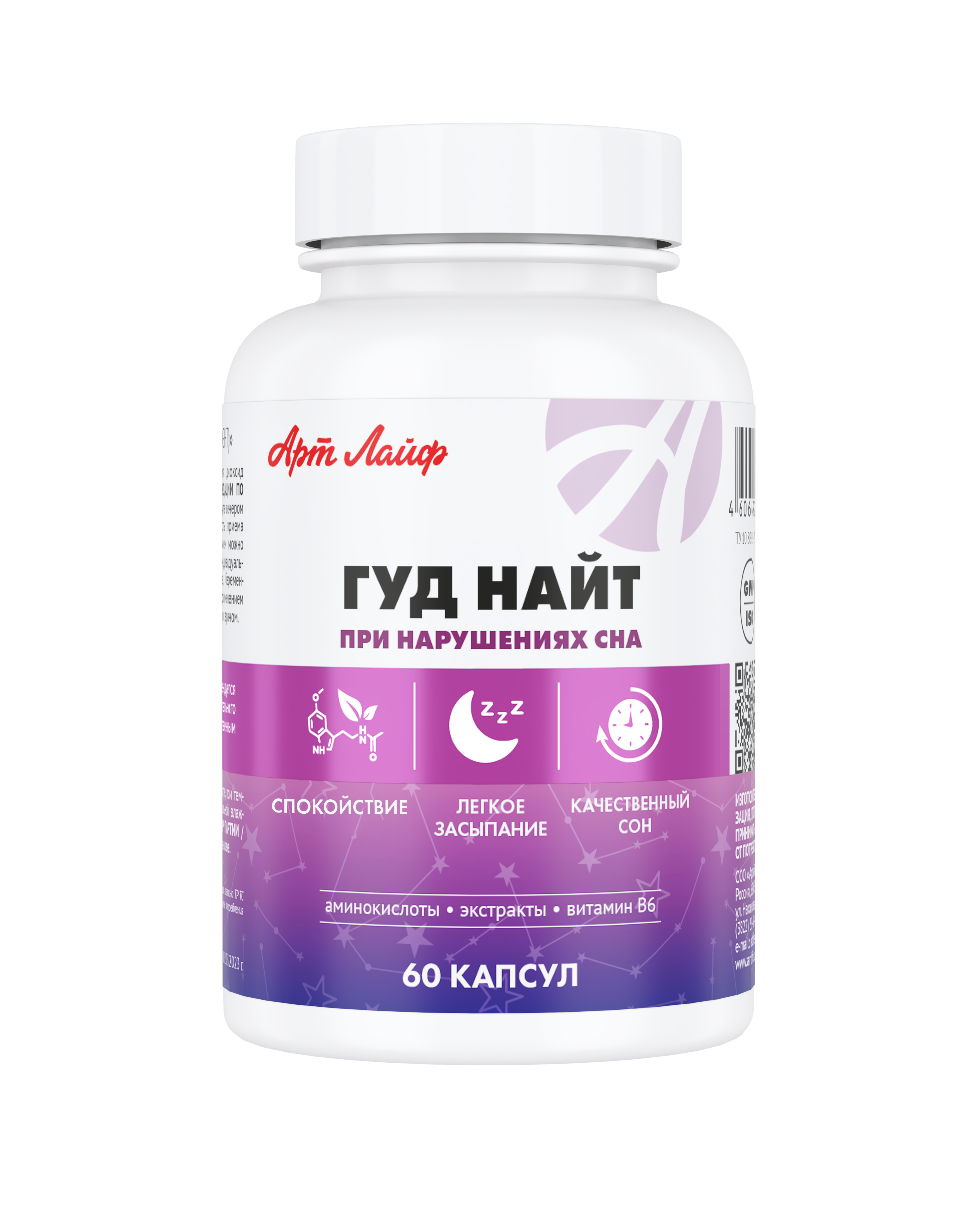 Сбалансированный состав и оптимальная дозировка комплекса Гуд Найт настраивают организм на качественный сон и поддерживают нервную систему.