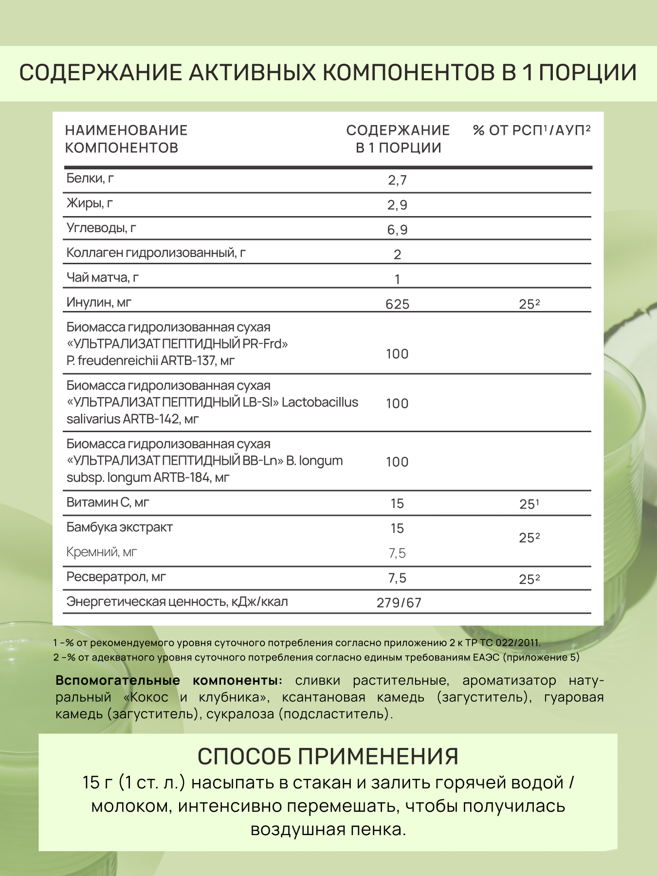 Матча Латте кокос (Matcha Latte coconut). Церемониальная матча латте с гидролизованным коллагеном, нативным кремнием и комплексом метабиотиков.