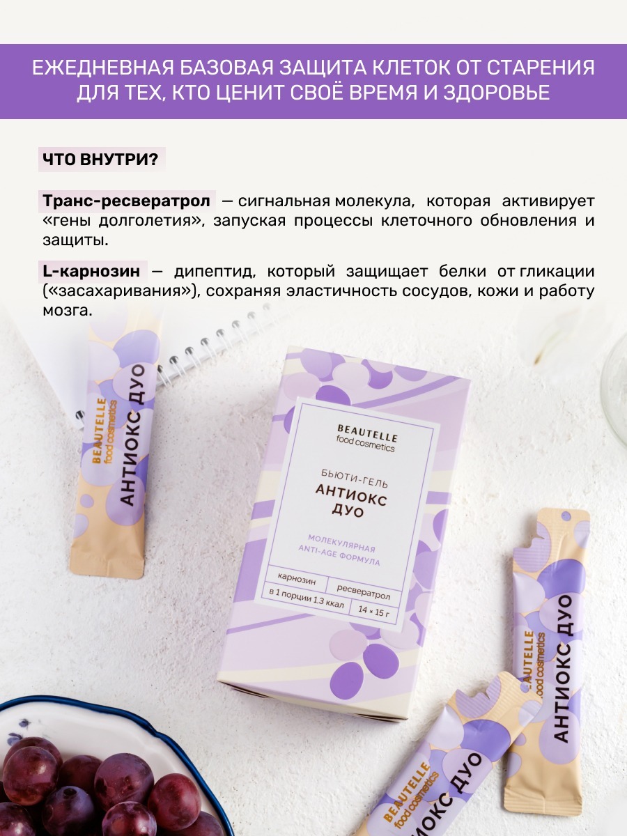 «Антиокс Гель» – это инновационная формула для ежедневной защиты клеток от возрастных изменений. Мы объединили два ключевых компонента с доказанными механизмами действия.